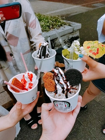 誕生日プレゼントなのかはわかりませんが友人とロールアイスを食べに行きましてね、楽しかったですよ